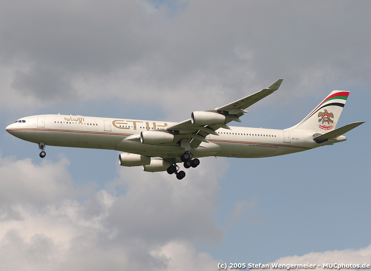 Etihad A340-313X A6-EYC. It´s now almost a year that she´s been here the last time! Ex SIA (9V-SJF) and Khalifa (7T-VKL).