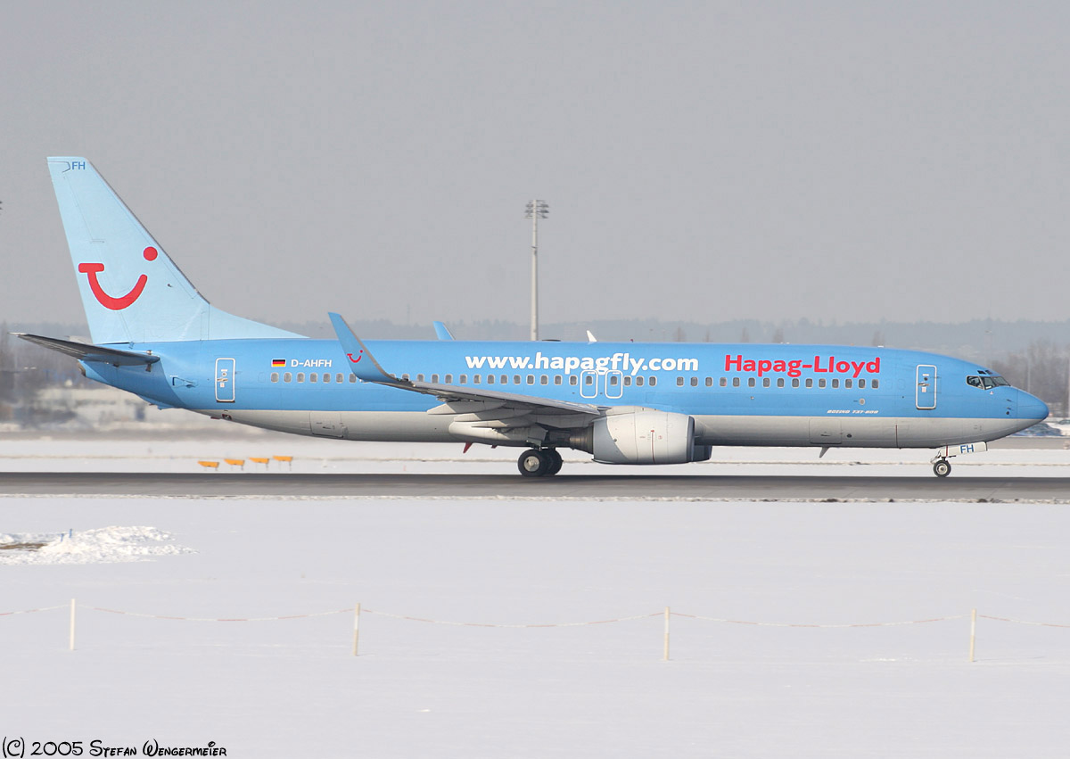 Hapag-Lloyd Boeing B737-8K5(WL). [Photo Info: Canon 20D, Date: FEB 26, 2005]