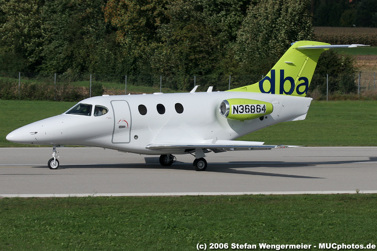 dba Raytheon 390 Premier 1A N36864, c/n RB-164. Slowing down on RWY25. Will reportedly take up new registration D-IDBA.