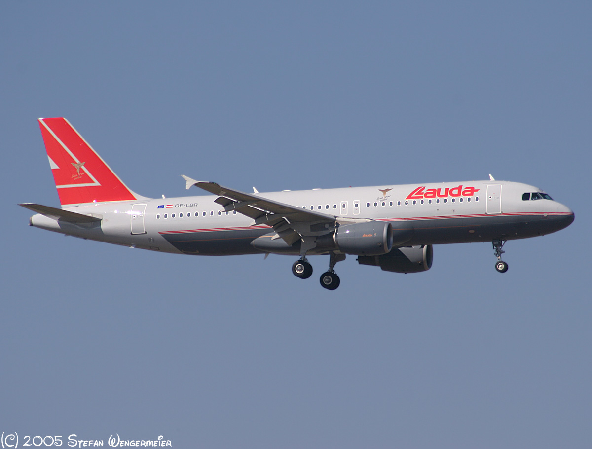 Lauda A320-214 OE-LBR. Flying CIA-MUC-VIE today... This one was in Austrian STAR ALLI c/s before!